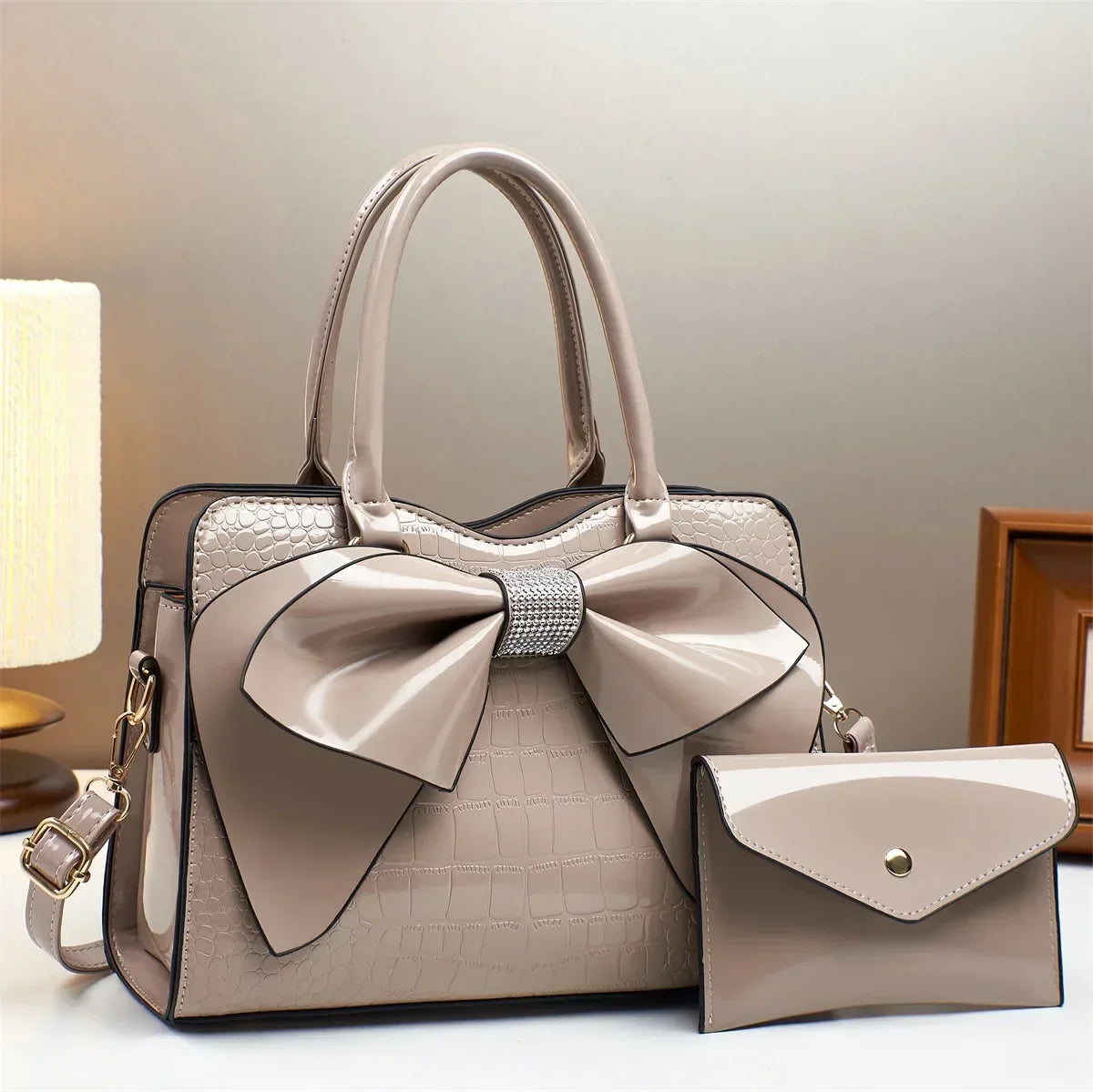 Zaprojektowany z polerowanej skóry i naszym charakterystycznym detalem Bella Bow, ten zestaw torebek łączy urok z codzienną funkcjonalnością. Przestronna torba w zestawie z pasującą kopertówką ma miękką podszewkę i zamknięte kieszenie, które pomogą utrzymać Twoje najważniejsze rzeczy w porządku i bezpiecznie w stylu.