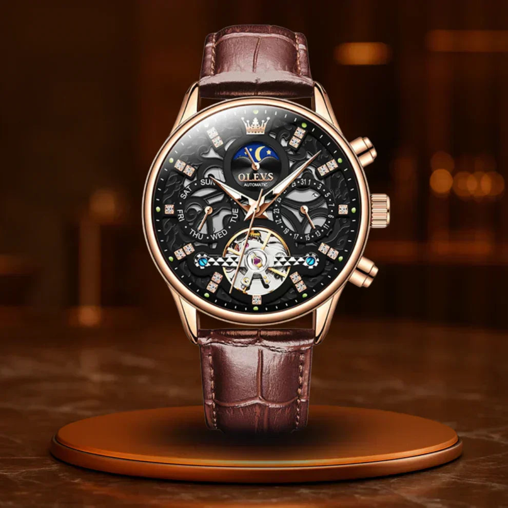 • Wyświetlacz faz księżyca & chronograf – gdzie romans spotyka funkcjonalność
